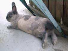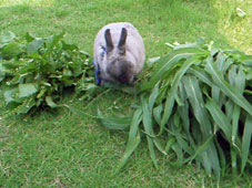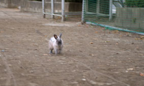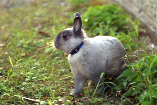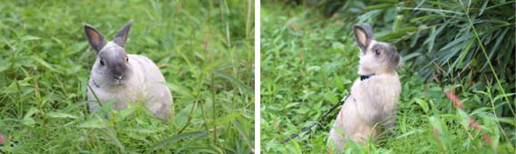 遊んでいた小学生の女の子がリードうさぎに興味津々、抱っこさせてあげたら「ウシ柄うさぎだ!」と叫びました