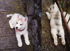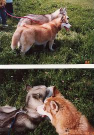 真冬の朝霜が降りる寒い頃、立派な自分の小屋があるにもかかわらず、寒いの大好きという、シベリアンハスキーのラルフと並んで、小屋の外で、茶色い背中に真っ白い霜を被り、ブルブル震えながら寝る、そんな兄弟仲のいい(?)2匹での生活です。